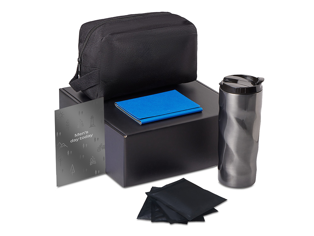 Материал товара: термокружка - нержавеющая сталь, пластик; кофе в дрип пакете - пластик; обложка для паспорта - полиуретан; косметичка - переработанный оксфорд; мешок - нетканый материал (спанбонд)