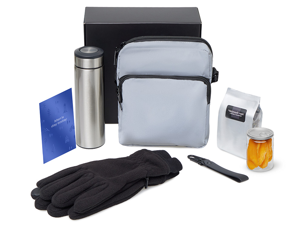 Материал товара: перчатки - полиэстер, термос - нержавеющая сталь, чай - пластик, брелок-ремувка - искусственная кожа, металл, манго - пластик, светоотражающая сумка - хлопок, полиэстер,мешок - нетканый материал (спанбонд), коробка - картон