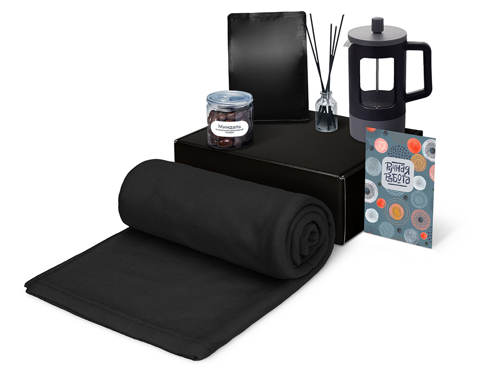 Материал товара: плед - флис, полиэстер, кофе - пластик, френч-пресс - нержавеющая сталь, боросиликатное стекло, ПП пластик, диффузор - стекло, миндаль - пластик, мешок - нетканый материал (спанбонд), коробка - картон
