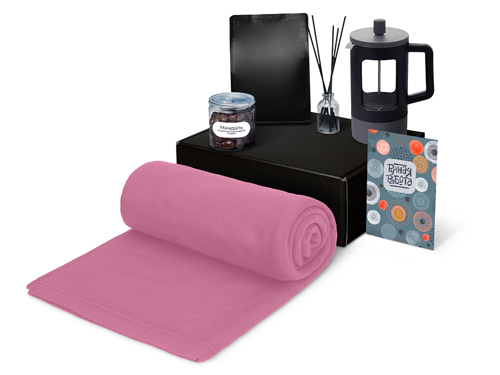 Материал товара: плед - флис, полиэстер, кофе - пластик, френч-пресс - нержавеющая сталь, боросиликатное стекло, ПП пластик, диффузор - стекло, миндаль - пластик, мешок - нетканый материал (спанбонд), коробка - картон