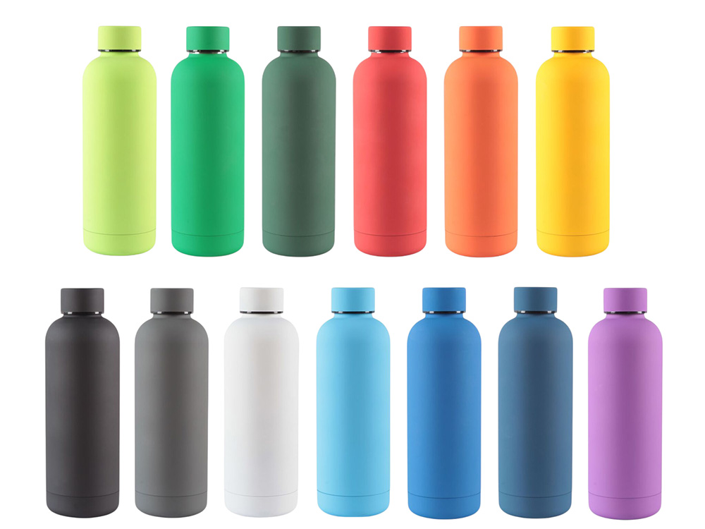 Термобутылка из нержавеющей стали с soft-touch покрытием, двойной корпус с вакуумной изоляцией и вместимостью до 550 мл. ø70 x 220 мм