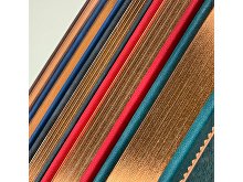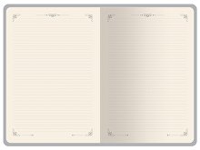 Недатированный ежедневник "Royal" формата А4 с твердой обложкой из искусственной кожи с имитацией нубука украшен художественным бронзовым и блинтовым тиснением. Внутри 192 страницы, выполненные из качественной бежевой бумаги в линейку плотностью 140 г/м². Два шелковых ляссе в цвет обреза блока и обложки облегчают навигацию по записям. Французский корешок дополнительно декорирован изящным бронзовым тиснением в виде виньеток. Скругленные углы обложки и блока подчеркивают стильный дизайн изделия, а блеск бронзового обреза дарит ежедневнику благородный и роскошный внешний вид.