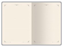 Недатированный ежедневник "Royal" формата А4 с твердой обложкой из искусственной кожи с имитацией нубука украшен художественным бронзовым и блинтовым тиснением. Внутри 192 страницы, выполненные из качественной бежевой бумаги в линейку плотностью 140 г/м². Два шелковых ляссе в цвет обреза блока и обложки облегчают навигацию по записям. Французский корешок дополнительно декорирован изящным бронзовым тиснением в виде виньеток. Скругленные углы обложки и блока подчеркивают стильный дизайн изделия, а блеск бронзового обреза дарит ежедневнику благородный и роскошный внешний вид.