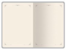 Недатированный ежедневник "Royal" формата А4 с твердой обложкой из искусственной кожи с имитацией нубука украшен художественным бронзовым и блинтовым тиснением. Внутри 192 страницы, выполненные из качественной бежевой бумаги в линейку плотностью 140 г/м². Два шелковых ляссе в цвет обреза блока и обложки облегчают навигацию по записям. Французский корешок дополнительно декорирован изящным бронзовым тиснением в виде виньеток. Скругленные углы обложки и блока подчеркивают стильный дизайн изделия, а блеск бронзового обреза дарит ежедневнику благородный и роскошный внешний вид.