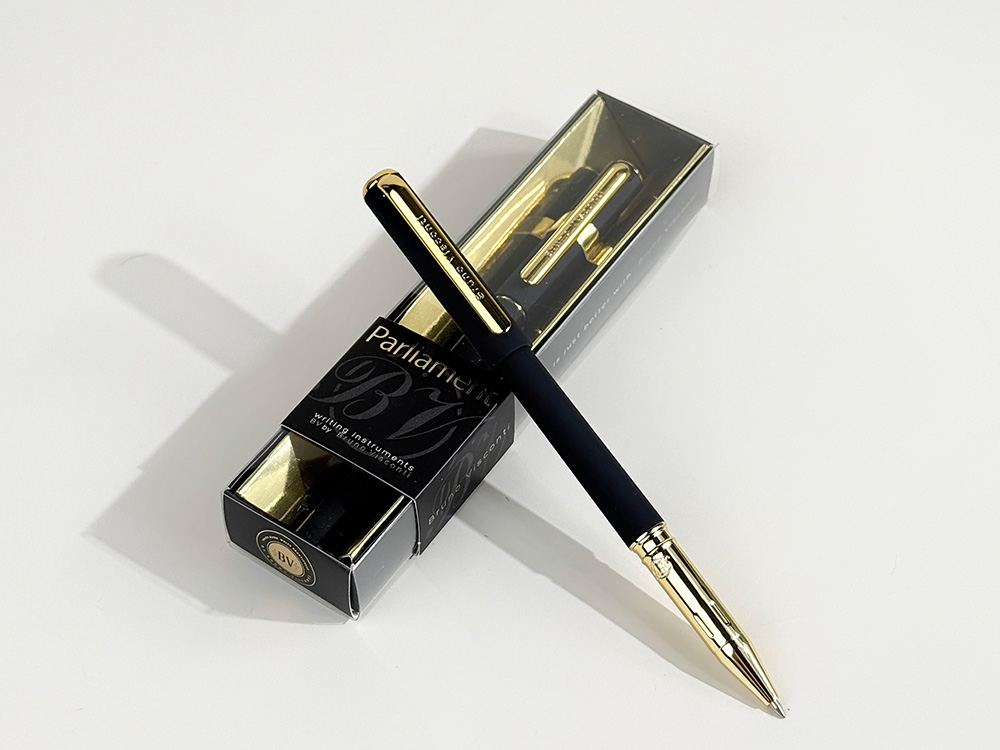 Ручка "Parliament" с чернилами на масляной основе синего цвета отличается мягким письмом и толщиной линии 0,5 мм. Ее прорезиненный корпус soft-touch обеспечивает комфорт при длительном использовании, а отвинчивающийся наконечник облегчает доступ к сменному стержню. Колпачок с клип-зажимом обеспечивает удобное крепление ручки на одежде или сумке. Качество письма обеспечивается премиальным швейцарским пишущим узлом диаметром 0,7 мм от производителя Premec и немецкими чернилами марки Dokumental. Ручка упакована в индивидуальную подарочную упаковку.