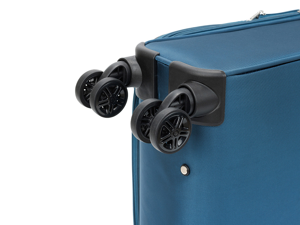 - 4 двойных колеса с вращением 360° — плавный ход и манёвренность.