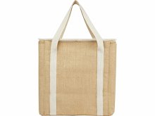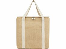Большая сумка-холодильник Джута изготовлена из прочного и износостойкого ламинированного джута. Имеет большое главное отделение (19 литров), вмещающее шесть бутылок объемом 1,5 л, отделанное пищевой алюминиевой изоляцией, что позволяет хранить продукты, напитки и закуски в холоде, сухости и безопасности на протяжении нескольких часов. Сумка имеет верхнюю застежку на молнии, передний карман и 2 тканых хлопковых ручки для переноски (50 x 2,5 см). Сделано в Индии и сертифицировано OEKO-TEX®.