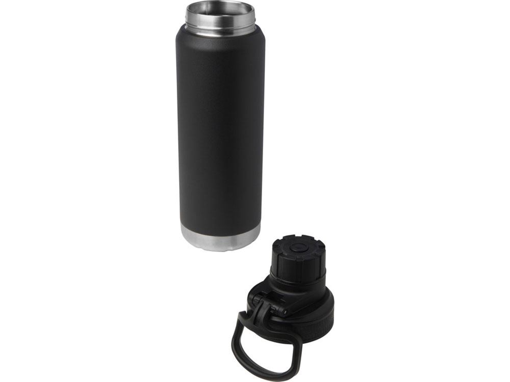 Бутылка из нержавеющей стали с двойными стенками и медной вакуумной изоляцией с навинчивающейся крышкой с защитой от протеканий, сертифицированная по стандарту RCS. Оснащена широким отверстием для легкого наполнения и чистки, а также удобной ручкой для переноски, встроенной в крышку. Подходит для газированных напитков. Прочное порошковое покрытие снаружи. Поставляется в подарочной коробке из переработанного картона. Объем: 700 мл.