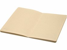 Liliana блокнот формата А5 в мягкой обложке со скругленными углами и 72 линованными листами бумаги плотностью 90 г/м². Обложка изготовлена из RPET и бумаги из сахарного тростника.