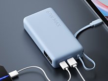 Пауэрбанк поддерживает быструю двустороннюю зарядку до 67 Вт через встроенный кабель, а также имеет дополнительный USB‑C и USB‑A порт — это позволяет быстро заряжать смартфоны, планшеты, ноутбуки и другие устройства.