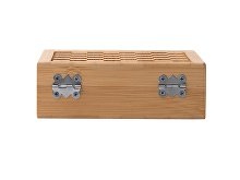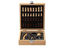 Винный набор с аксессуарами из нержавеющей стали и бамбука. Представлен в бамбуковом футляре с шахматным рисунком. Мягкая внутренняя отделка. В комплекте игровые фишки и 4 аксессуара: штопор, дозатор, крышка и кольцо для сбора капель. Поставляется в экологичной дизайнерской коробке.