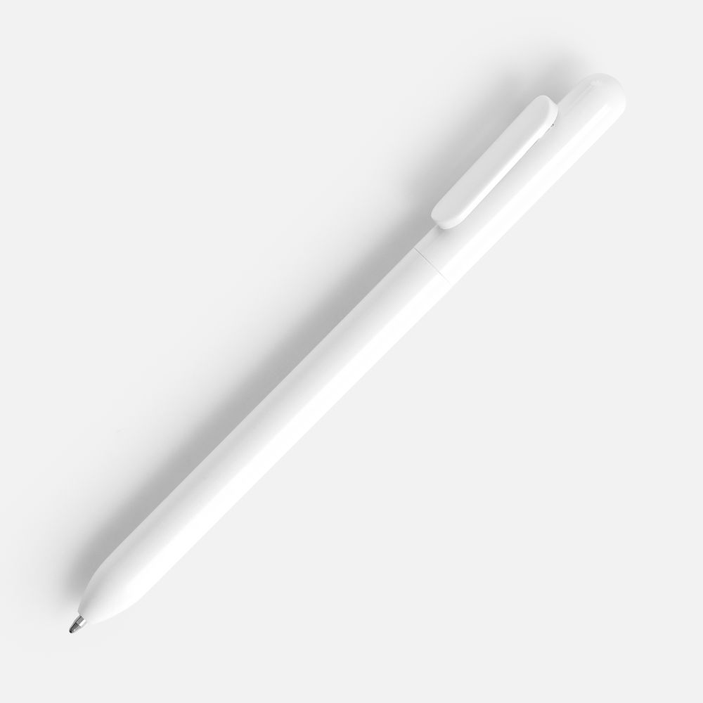 Ручка из глянцевого пластика с белым клипом.