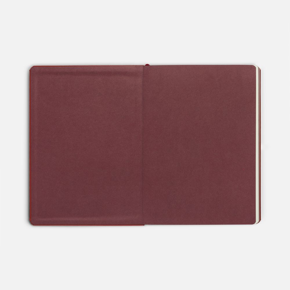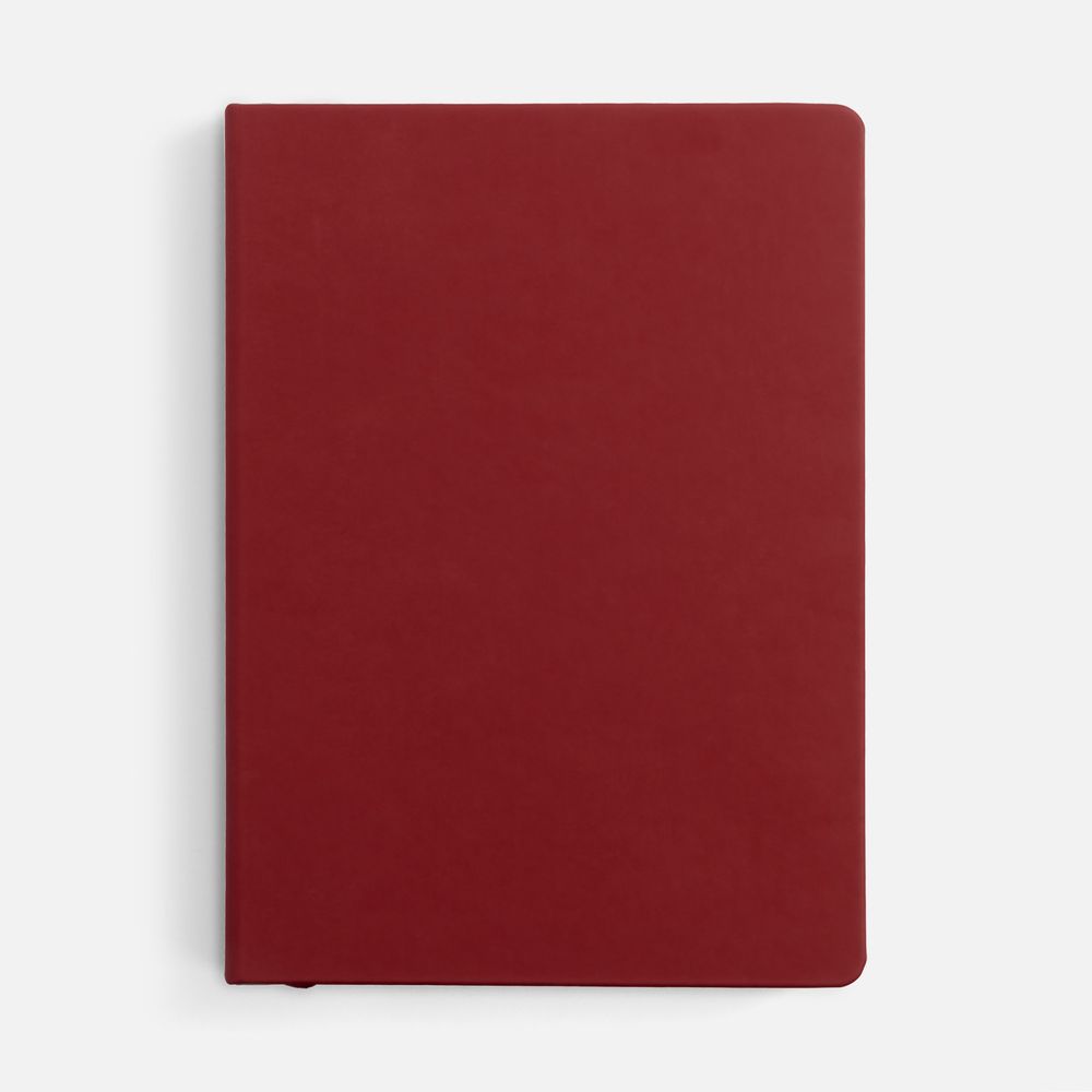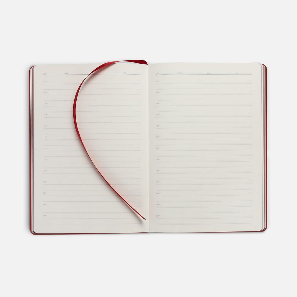Ежедневник с твердой обложкой и тонированным обрезом, выполнен из материала Soft Touch, красный РР, дополнен ляссе в цвет обложки.