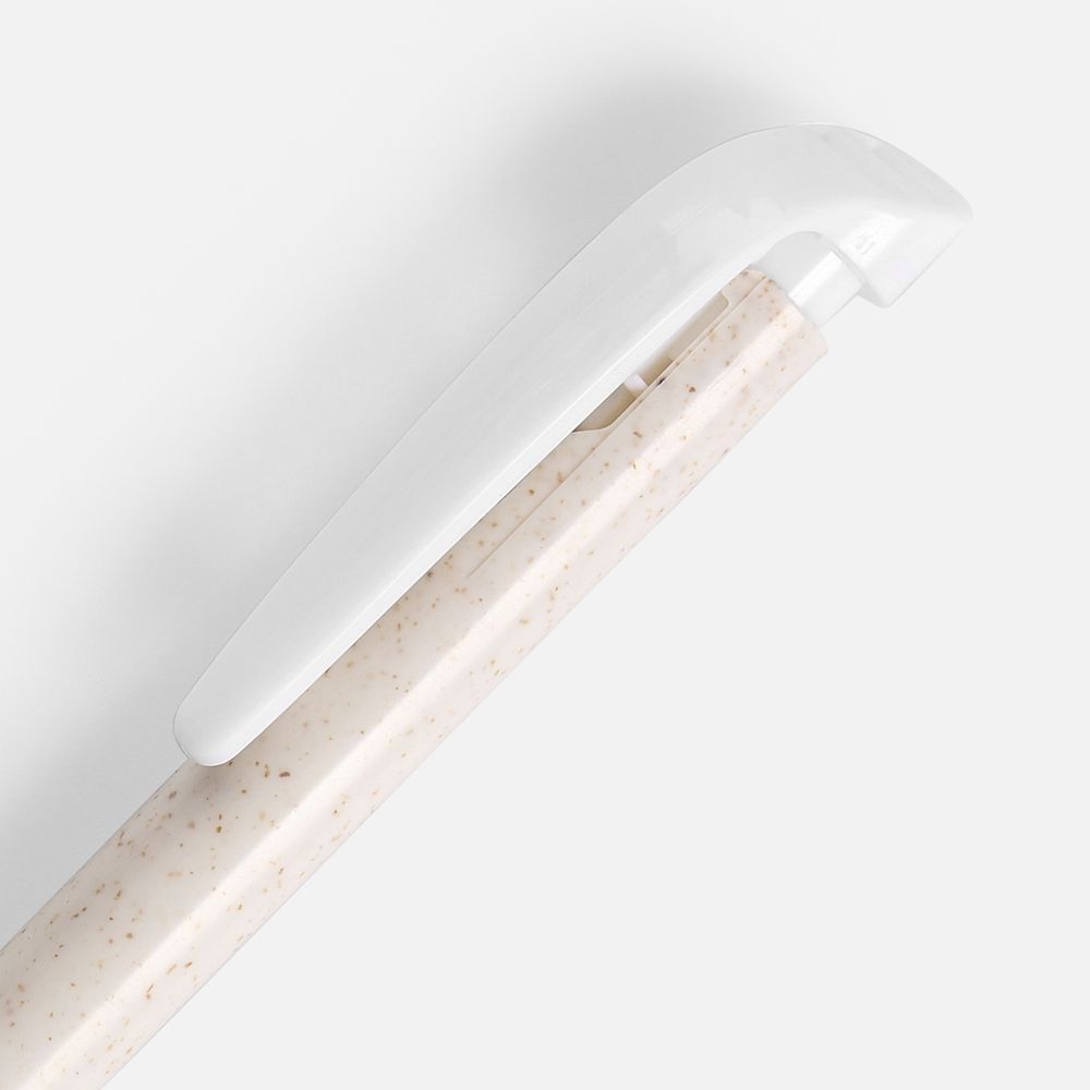 Корпус ручки изготовлен из пластика, смешанного с волокнами пшеницы. Включение в состав пластика пшеничных волокон — это шаг на пути к созданию продукции из возобновляемых материалов и сокращению использования синтетических полимеров.