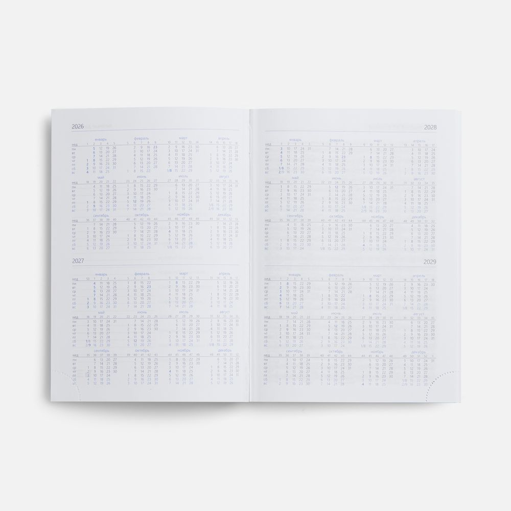 Ежедневник с твердой обложкой без поролона, выполнен из материала Nebraska, синий НН, дополнен ляссе и капталом в цвет обложки.