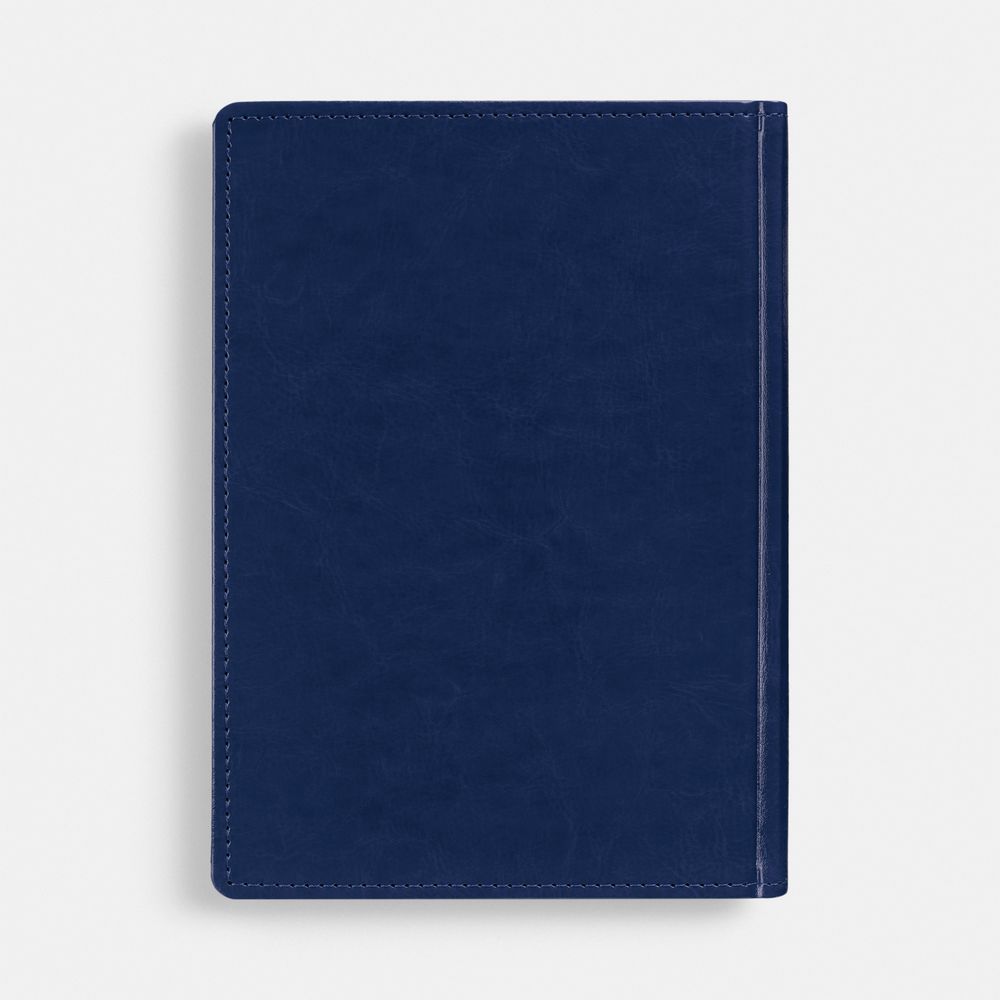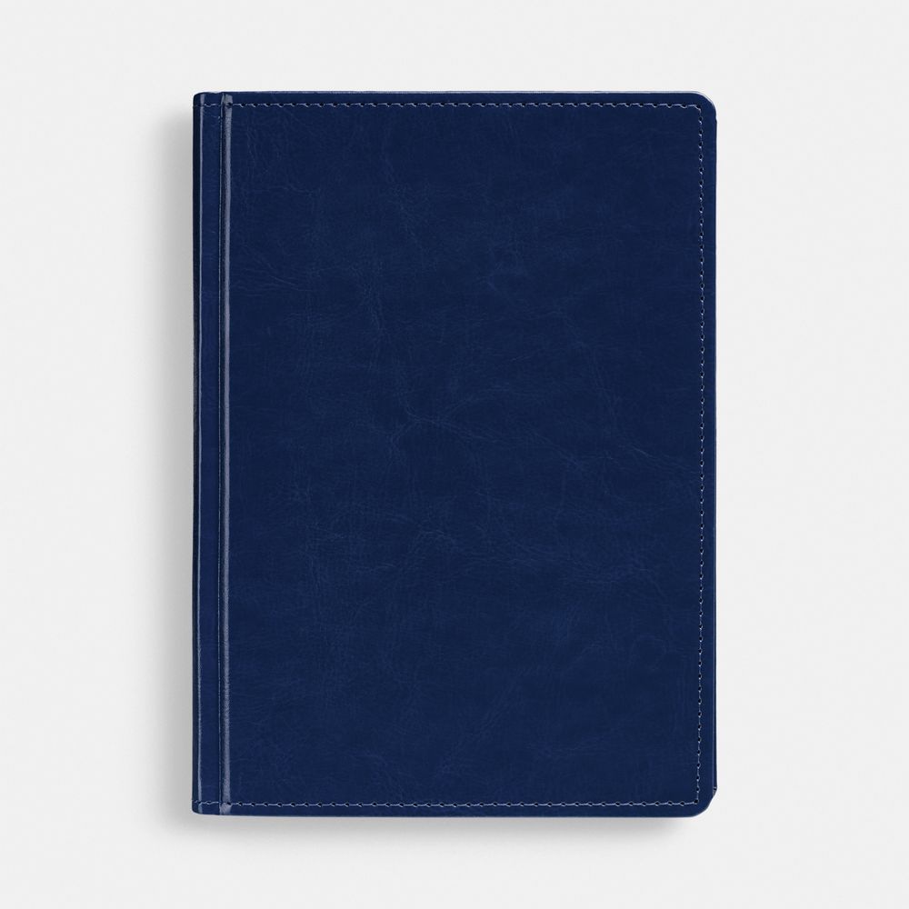 Ежедневник с твердой обложкой без поролона, выполнен из материала Nebraska, синий НН, дополнен ляссе и капталом в цвет обложки.
