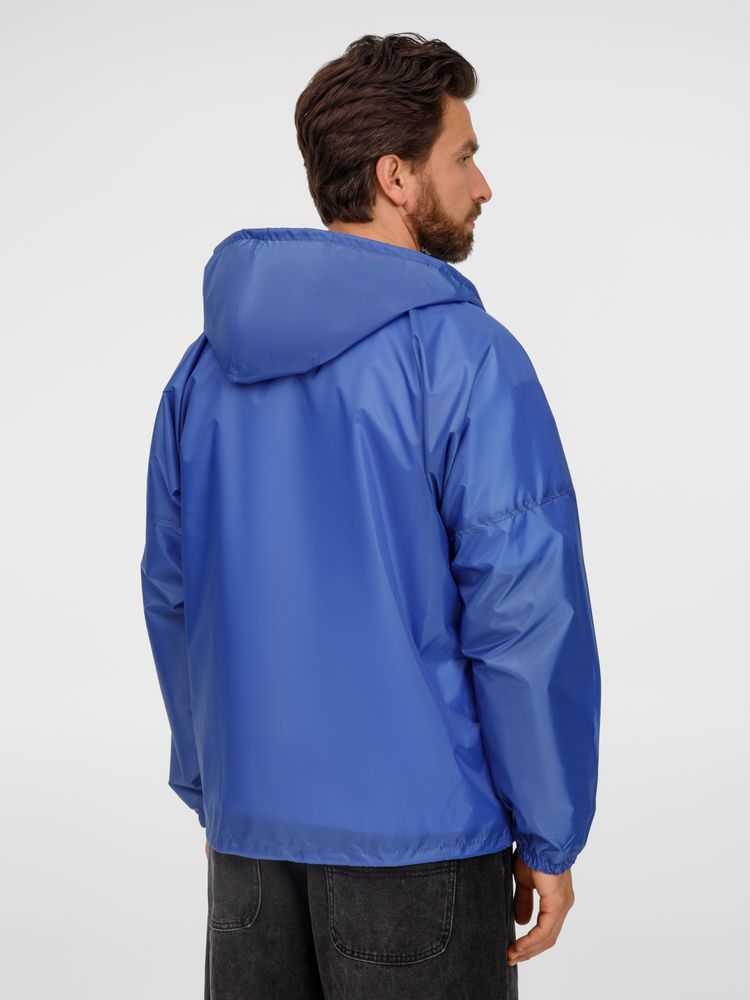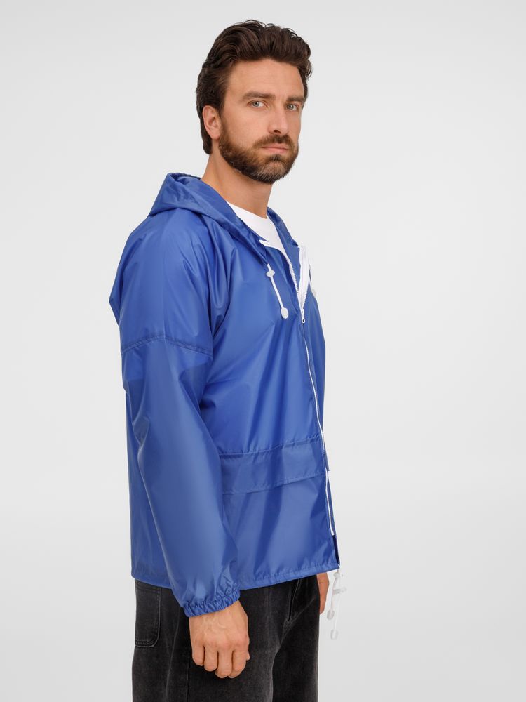 Укороченный дождевик свободного кроя из ткани таффета с влагозащитным покрытием. Складывается в мешочек — удобно брать с собой.