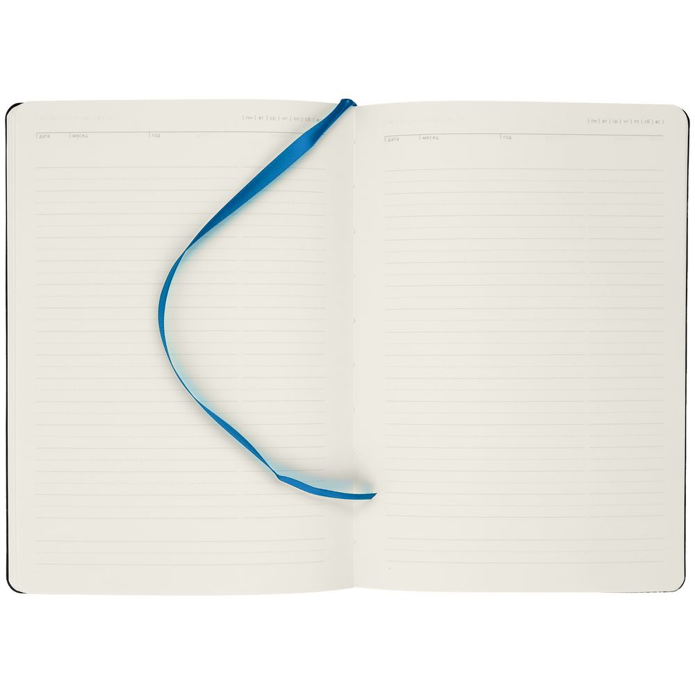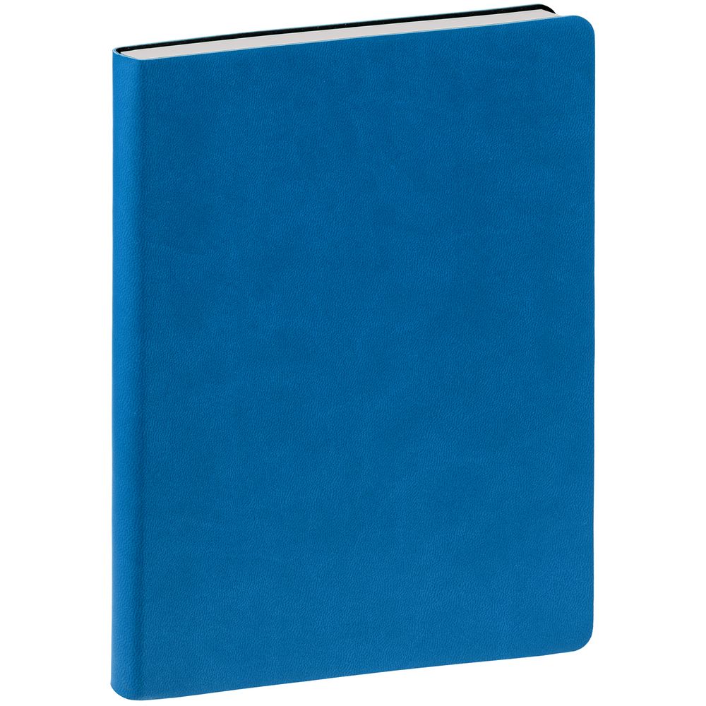 Ежедневник с гибкой обложкой, выполнен из материала Latte, ярко-синий, дополнен ляссе в цвет обложки.
