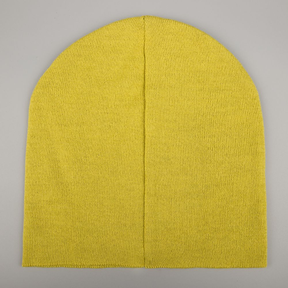 Модель: удлиненная однослойная шапка с жаккардовым узором в 2-3 цвета, без отворота, без помпона.