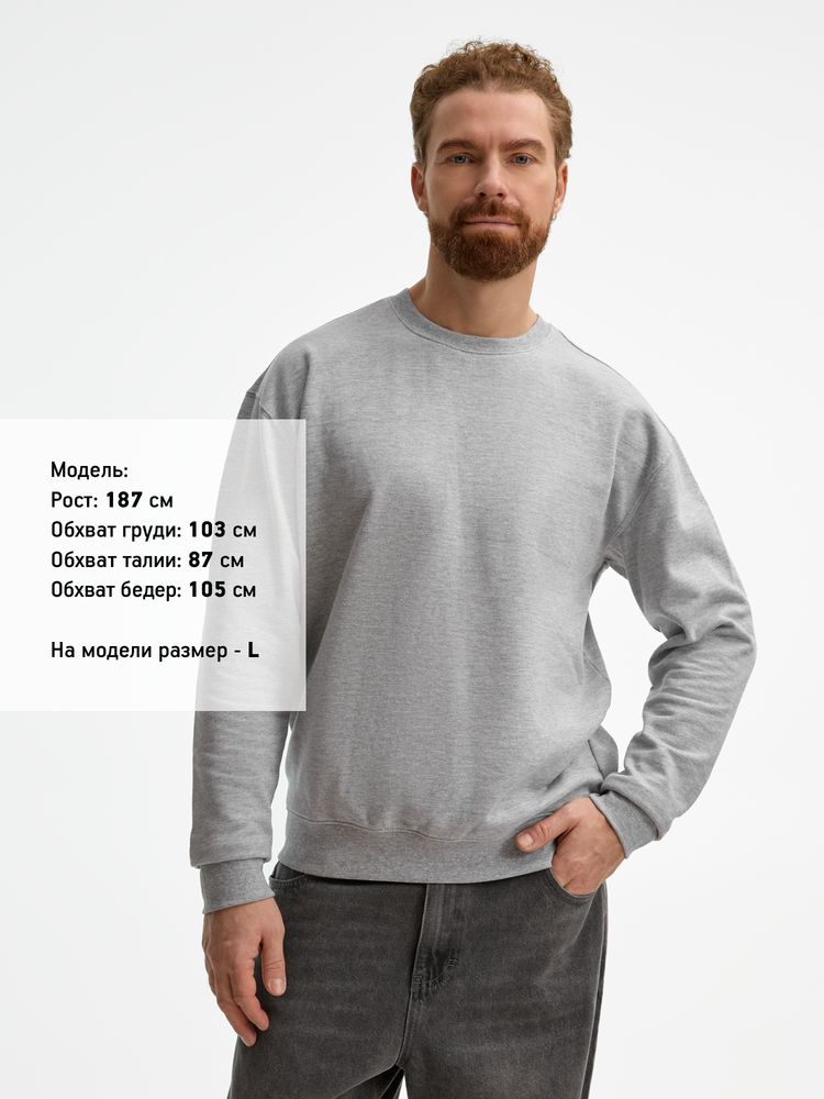 Свитшот унисекс из хлопка и переработанного полиэстера с круглым вырезом и втачным рукавом.
