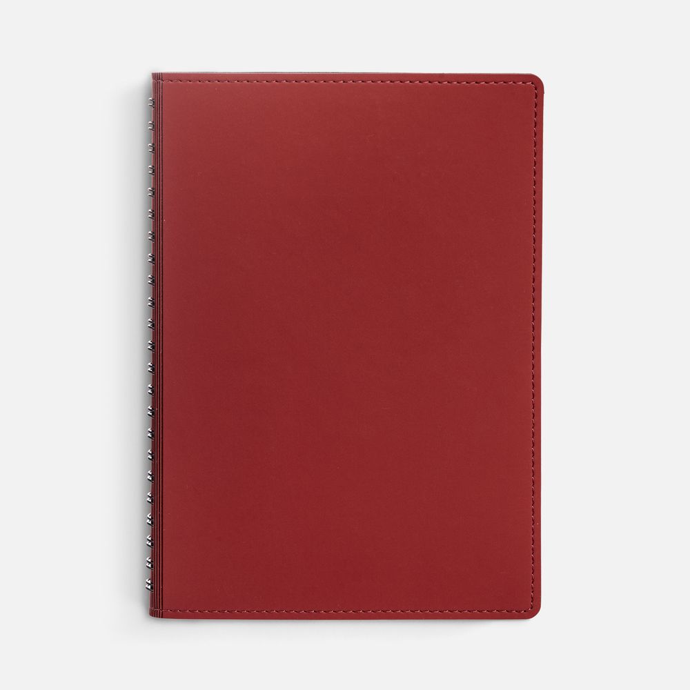 Ежедневник с гибкой обложкой, выполнен из материалов Soft Touch, красный РР и Nice Touch, черный АА.