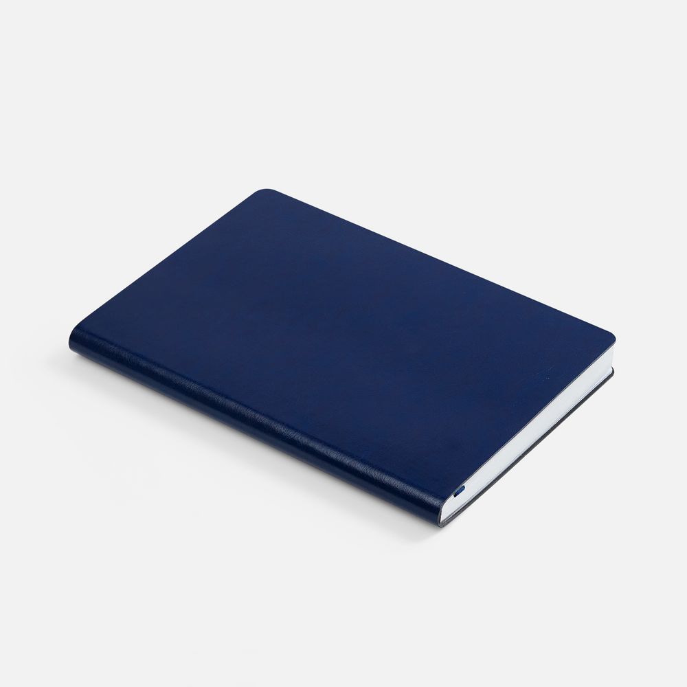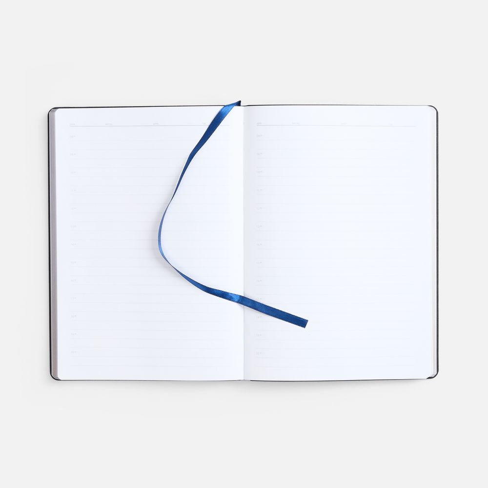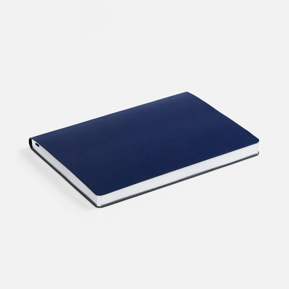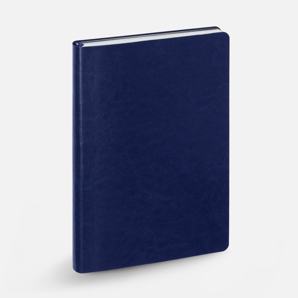 Модная интерпретация статусного ежедневника — с металлизированным обрезом и гибкой обложкой. Ежедневник с гибкой обложкой, выполнен из материала Nebraska, синий HH, дополнен ляссе темно-синего цвета.