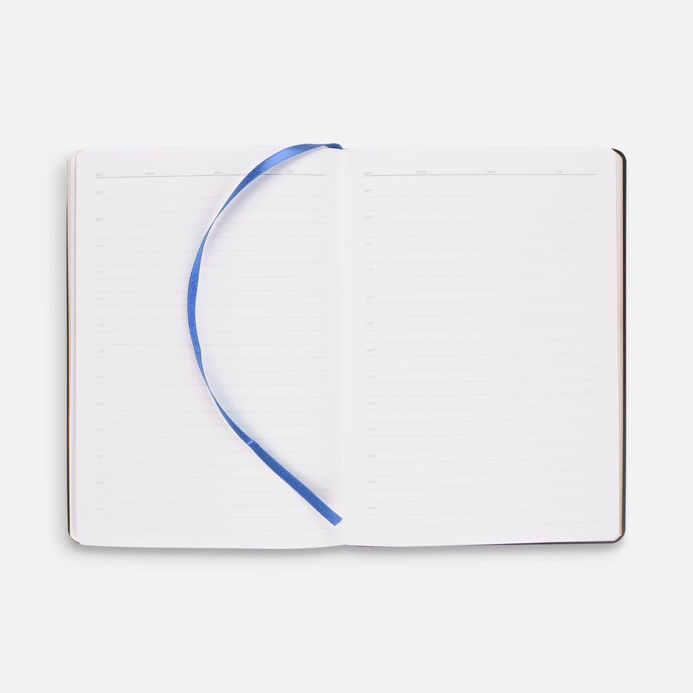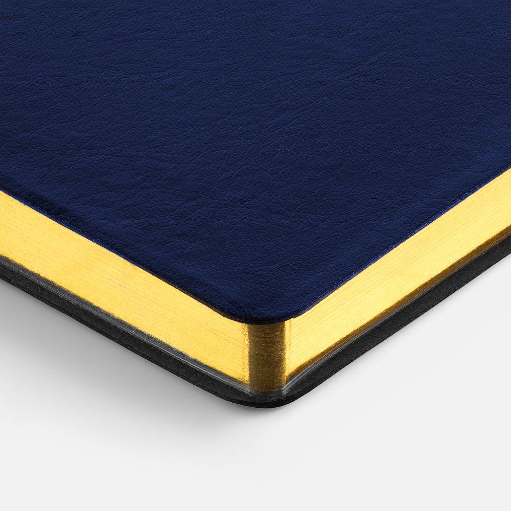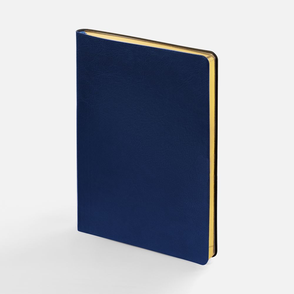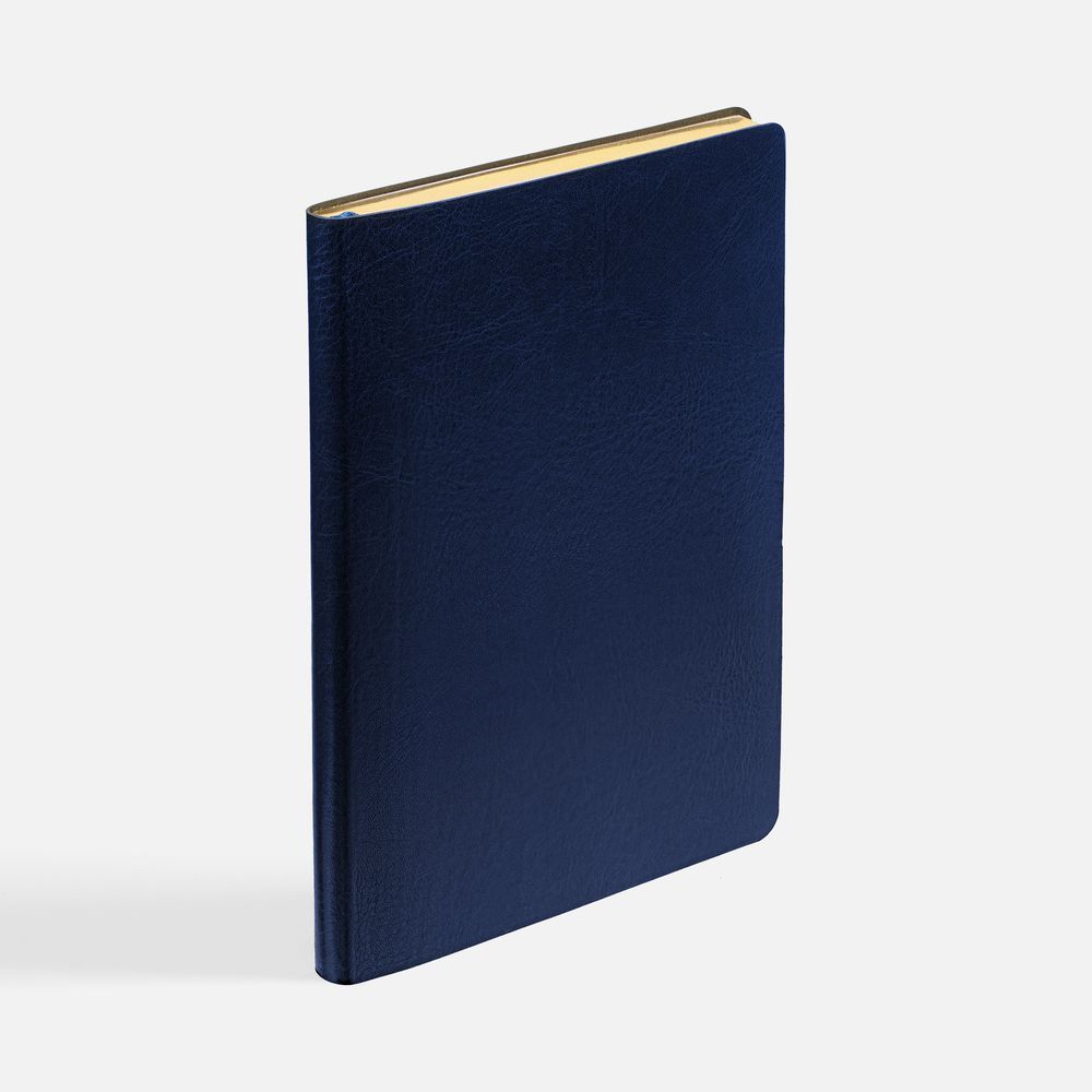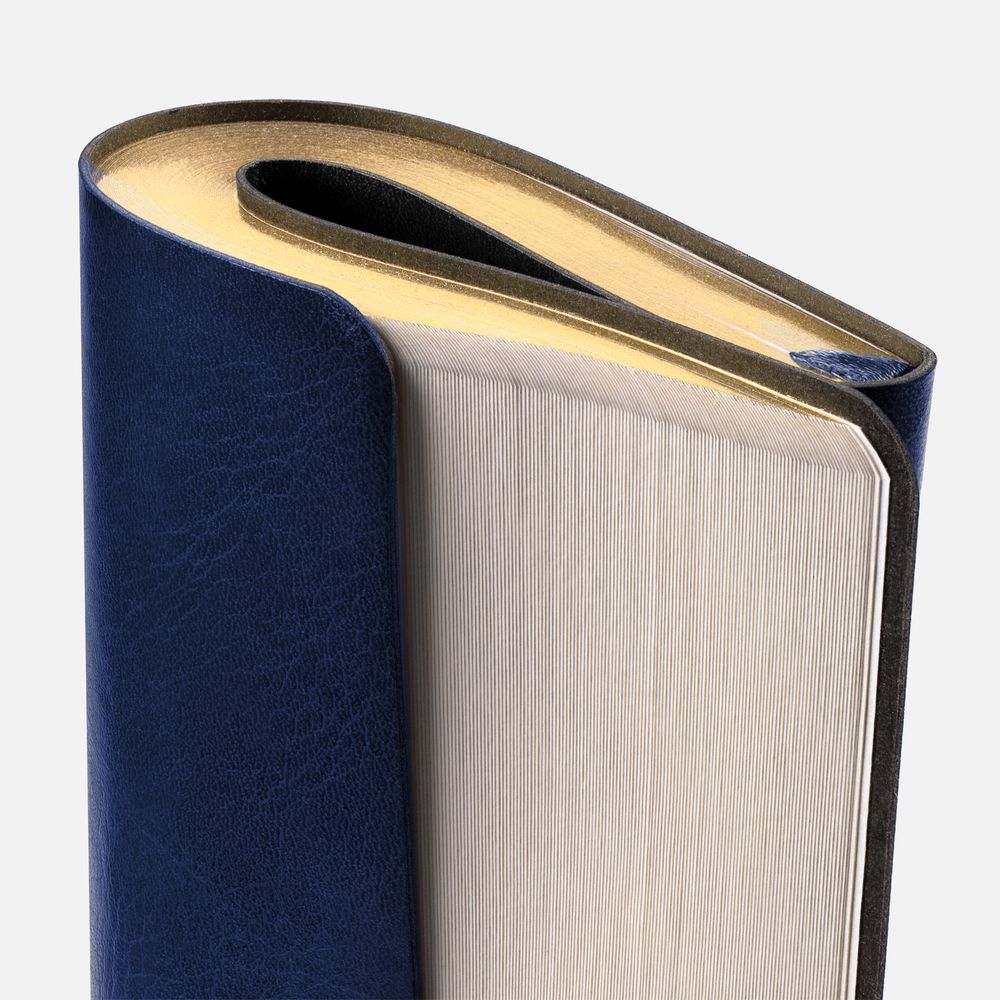 Модная интерпретация статусного ежедневника — с металлизированным обрезом и гибкой обложкой. Ежедневник с гибкой обложкой, выполнен из материала Nebraska, темно-синий ХХ, дополнен ляссе темно-синего цвета.