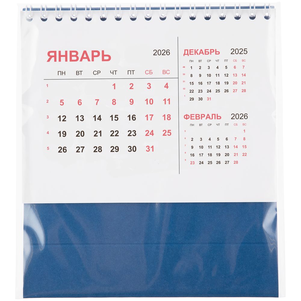 Компактный настольный календарь с датировкой на 2026 год. Основа выполнена из дизайнерской бумаги Macedonia плотностью 260 г/м². Численник изготовлен из мелованной бумаги плотностью 130 г/м².