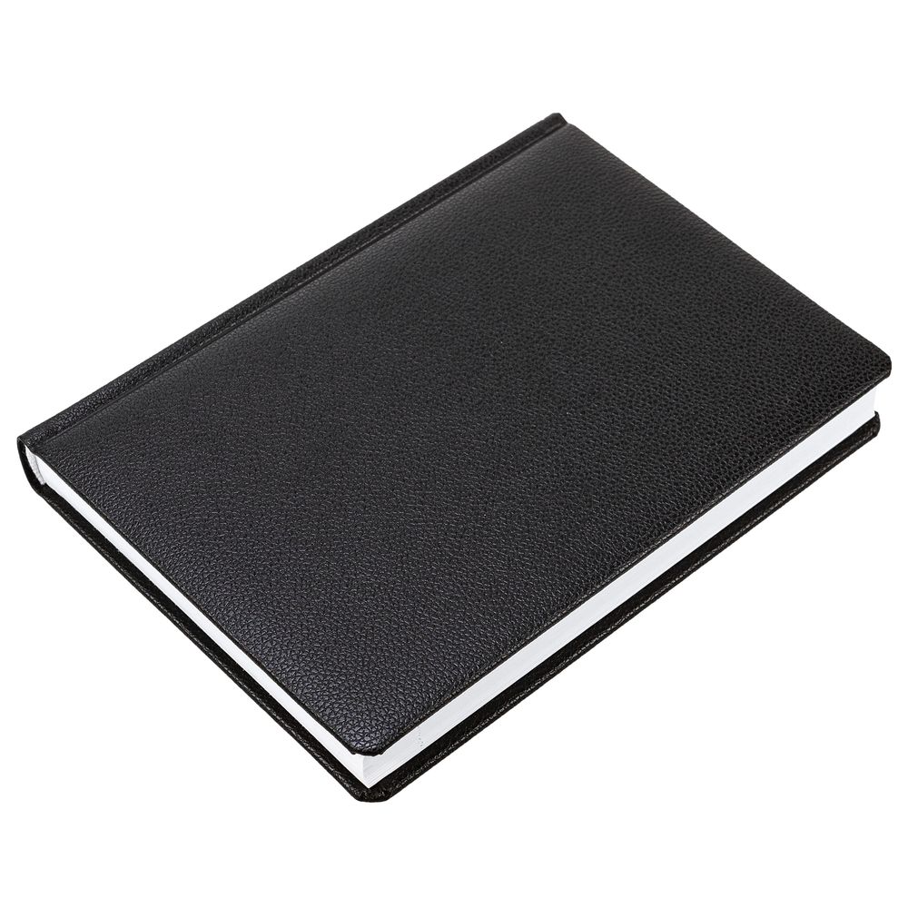 Ежедневник в твердой обложке c поролоном, выполнен из материала La Fite, черный АА, дополнен ляссе белого цвета.