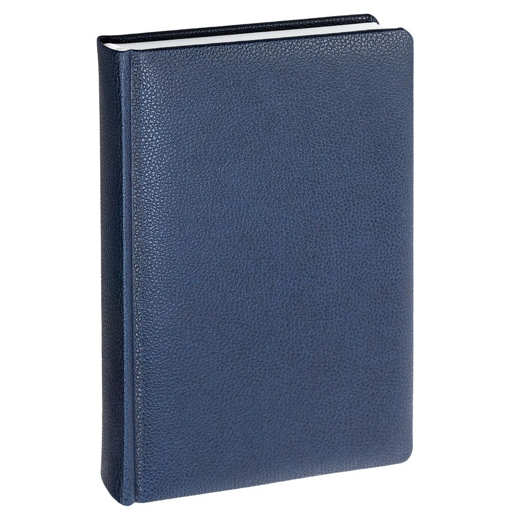 Ежедневник в твердой обложке c поролоном, выполнен из материала La Fite, темно-синий ХХ, дополнен ляссе белого цвета.