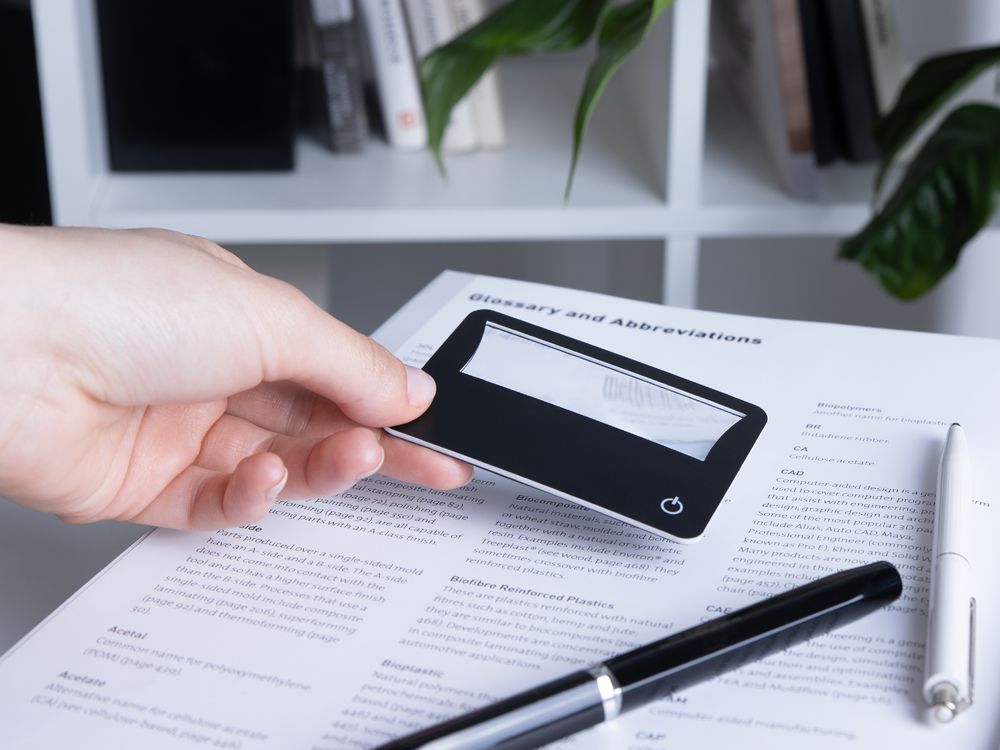 Лупа Visionary выполнена по принципу линзы Френеля и предназначена для чтения мелкого текста или просмотра мелких рисунков, изображений, шкал, схем. Компактные размеры, небольшой вес и форма в виде кредитной карты упрощают повседневное использование лупы. Увеличение — 3 крата. Подсветка работает от встроенной батарейки типа CR1220 (от 1 до 3 лет в зависимости от интенсивности использования). Поставляется в полиэтиленовом пакете.
