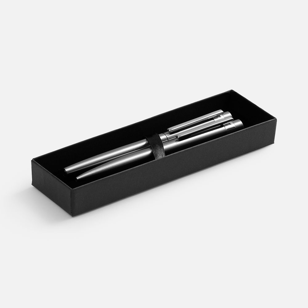 Ручка и роллер Platero из переработанной вторичной стали в изящном матовом корпусе — вклад в экологию и сокращение углеродного следа. Уверенность в себе и в будущем. Набор в картонной коробке с флокированным ложементом.