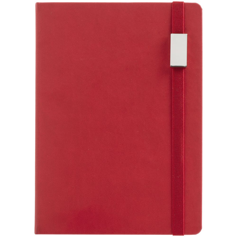 Ежедневник с твердой обложкой, выполнен из материала Latte, красный РР, обрез красного цвета, дополнен ляссе красного цвета ирезинкой с металлическим шильдом.