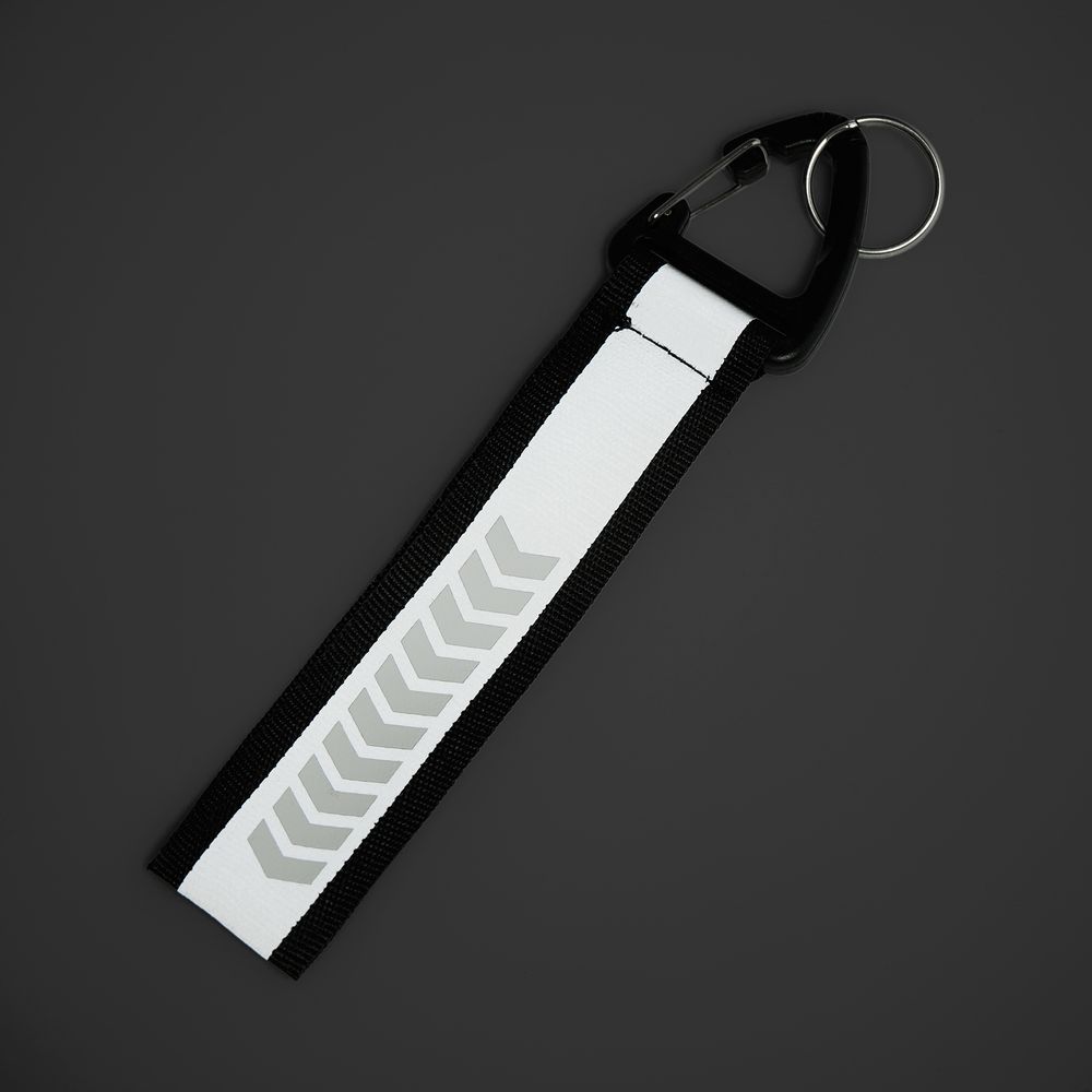 Светоотражающий брелок Flashline становится заметным в темное время суток при попадании света на центральную полосу.