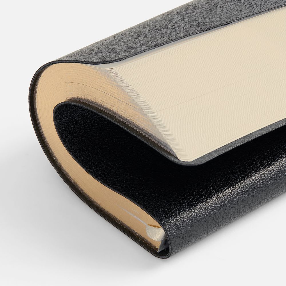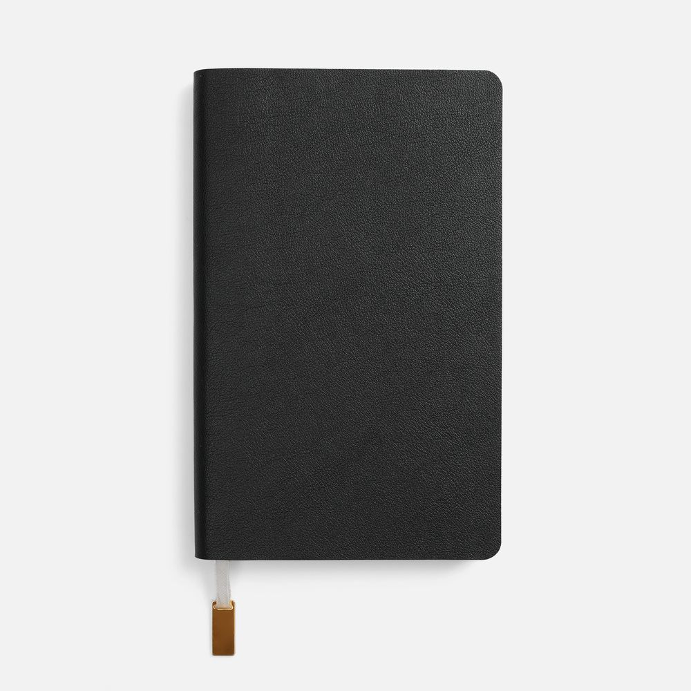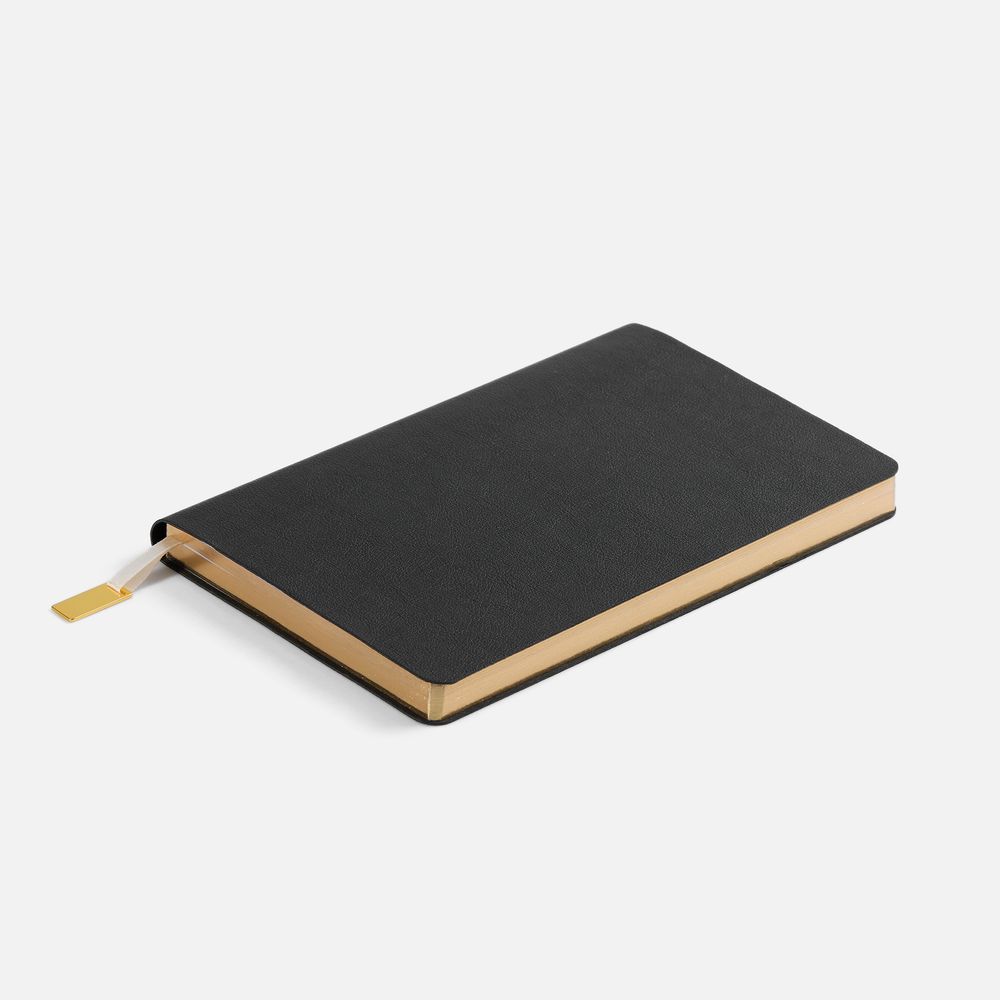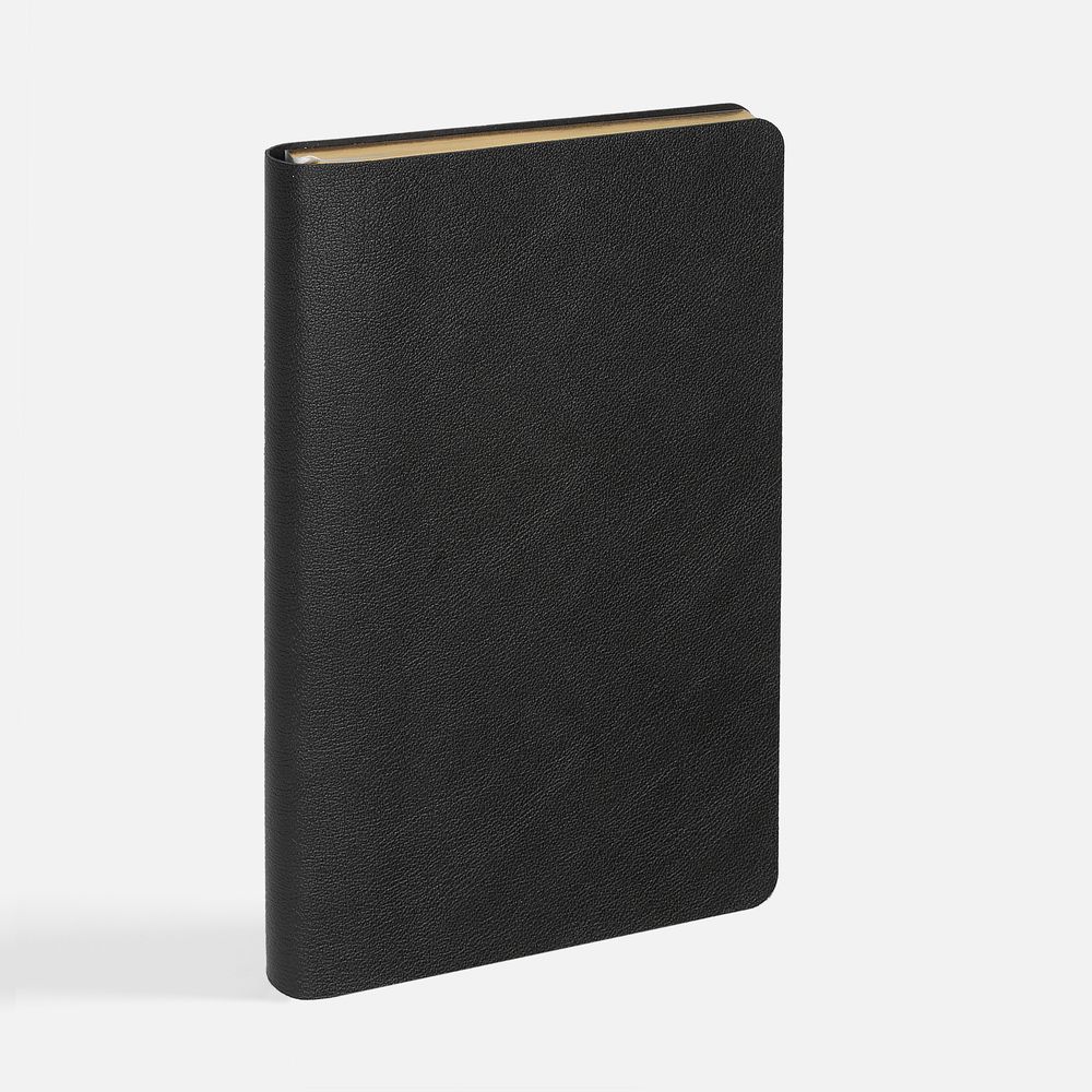 Ежедневник с гибкой обложкой, выполнен из материала Petrus, черный АА, дополнен серым ляссе с металлическим золотистым шильдиком.