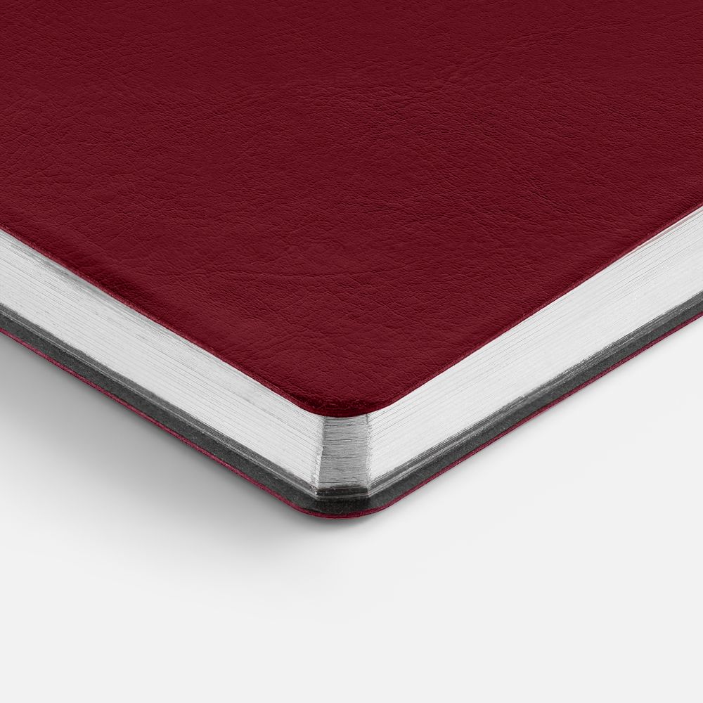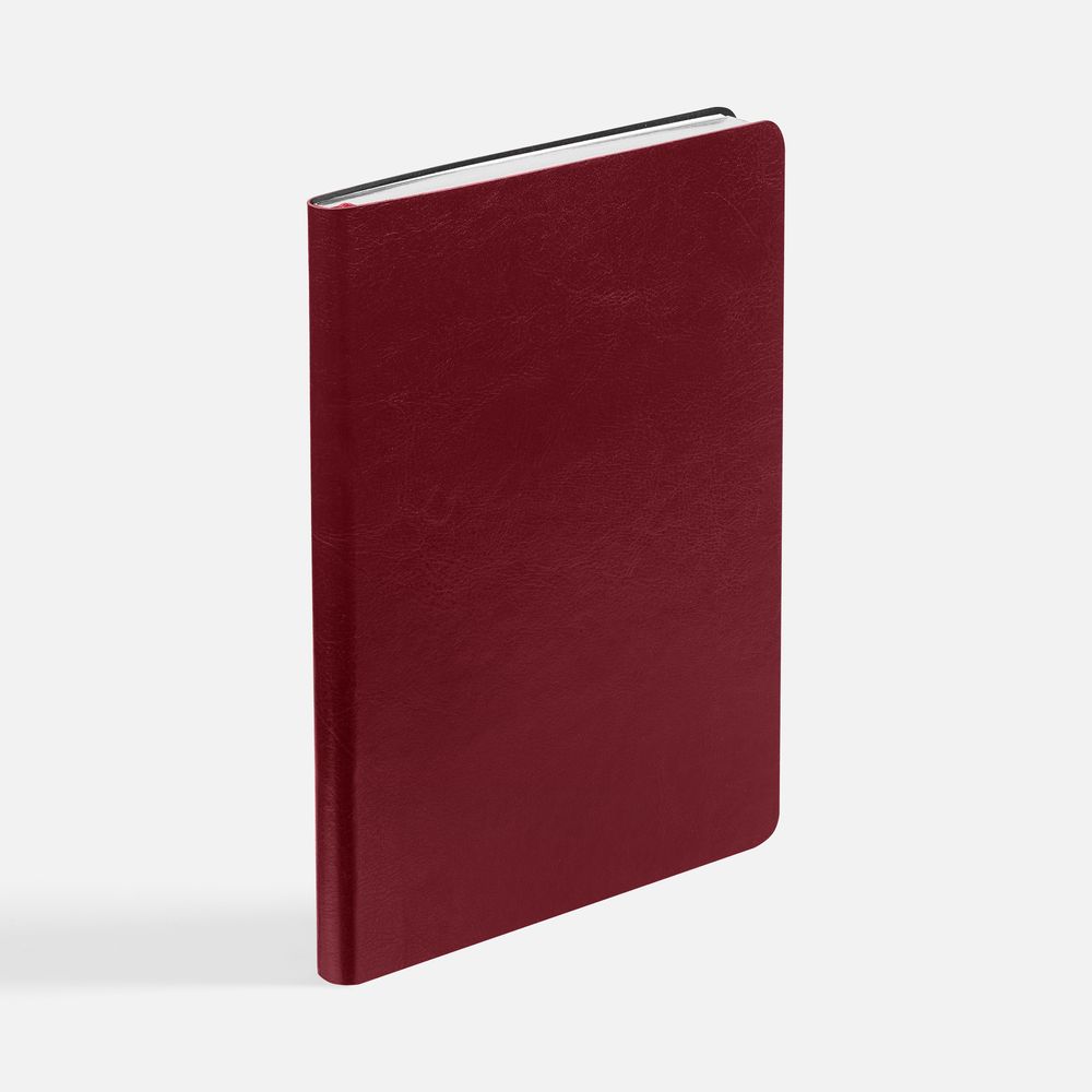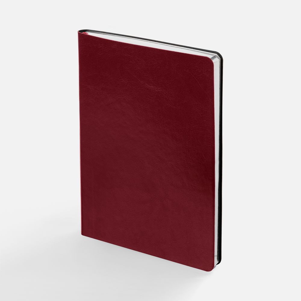 Модная интерпретация статусного ежедневника — с металлизированным обрезом и гибкой обложкой. Ежедневник с гибкой обложкой, выполнен из материала Nebraska, винный SS, дополнен ляссе бордового цвета.