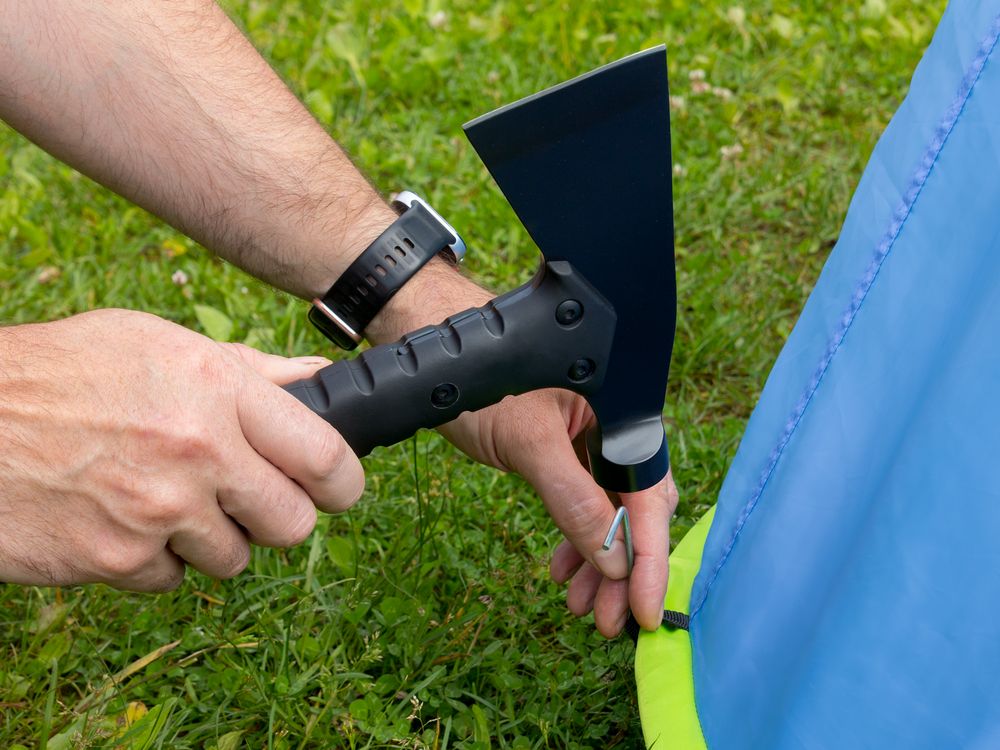 Туристический топор с молотком на обухе поможет нарубить дрова, расчистить место для стоянки, подготовить кострище и поставить лагерь.