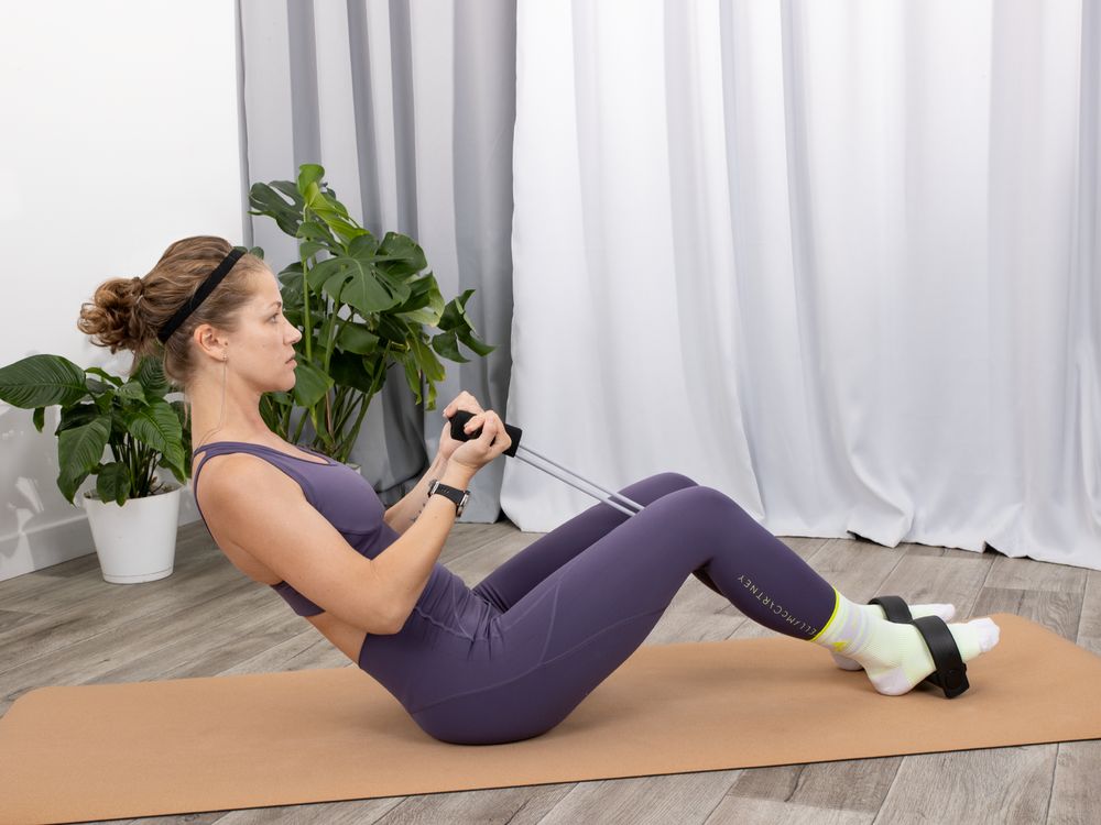 Удобные прорезиненные ручки для рук и упоры для ступней;