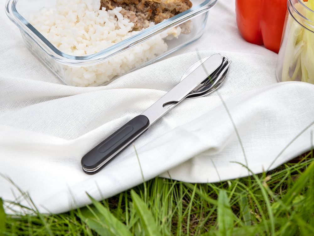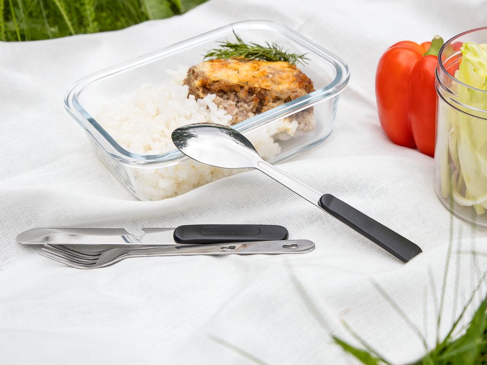 Набор столовых приборов Campsite — неотъемлемая часть любого похода или пикника. С таким компактным набором любое времяпрепровождение на свежем воздухе станет заметно комфортнее: ложка, вилка и нож не занимают много места и легко раскладываются на три отдельных прибора для использования по назначению. Набор столовых приборов из ложки, вилки и ножа с открывашкой с разборной конструкцией.