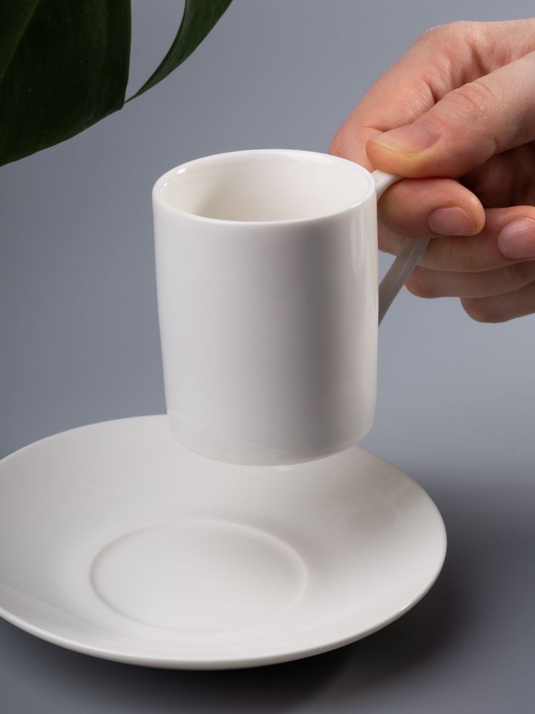Размеры: чашка: диаметр 5,6 см, высота 6,4 см, ширина с ручкой 8,1 см; блюдце: 12,6х12,6х1,6 см см; упаковка 17,6х18,6х10,3 см