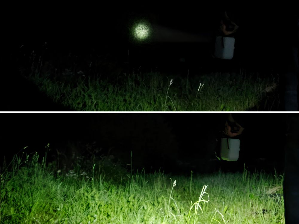 Рассеянный луч света — светодиод COB мощностью 400 лм, дальность светового луча до 25 м, время работы до 4 ч