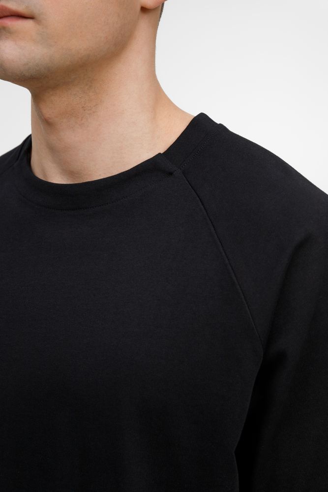 Горловина по рукаву — реглан выполнена резинкой 2х2, а спереди и сзади — из основного полотна
