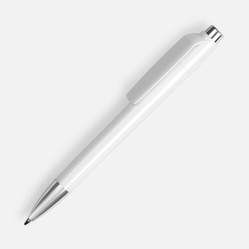 Пластиковая ручка с глянцевым корпусом и хромированными деталями. Большой клип идеален для нанесения логотипа компании.