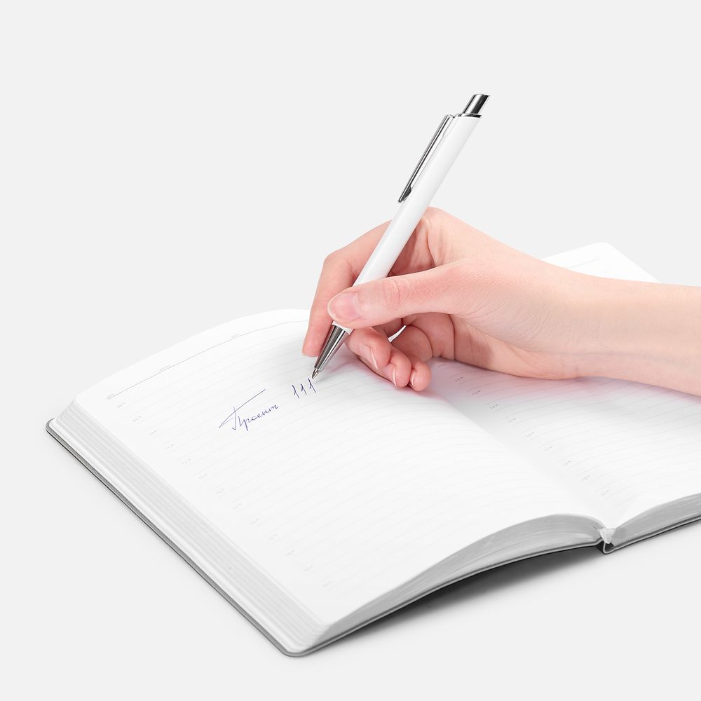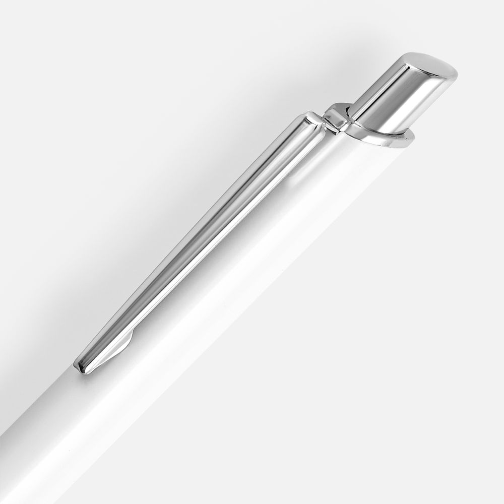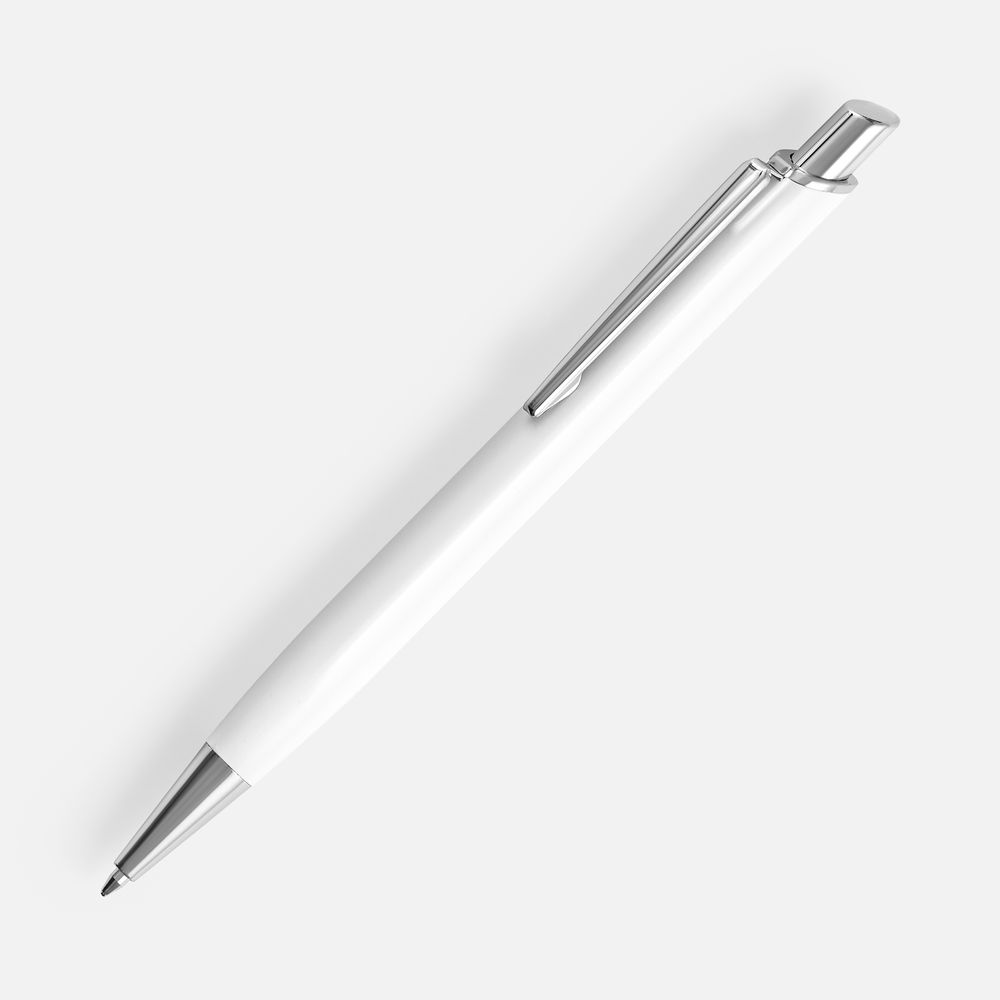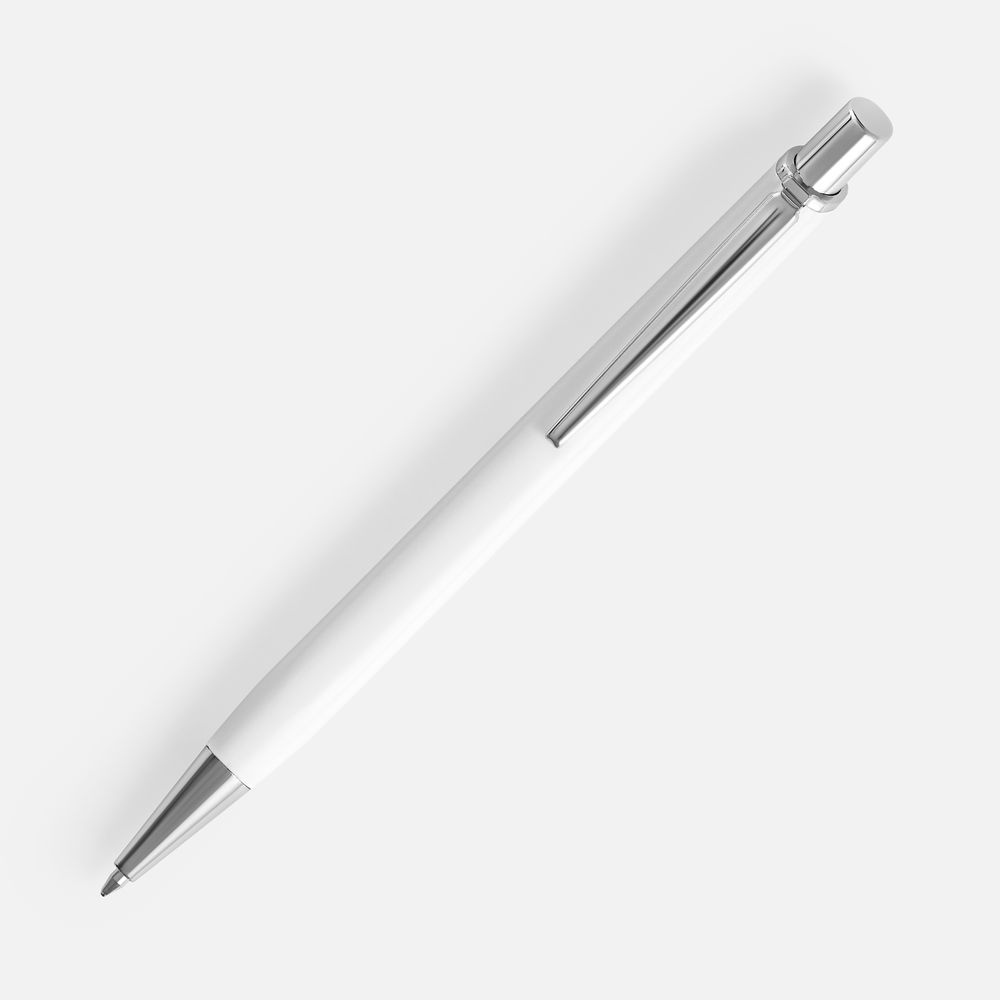 Металлическая ручка с матовым корпусом и хромированными деталями.