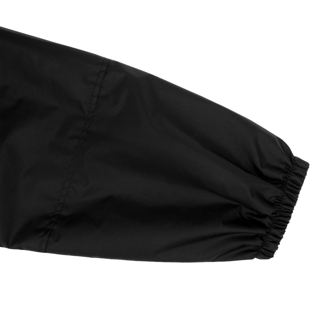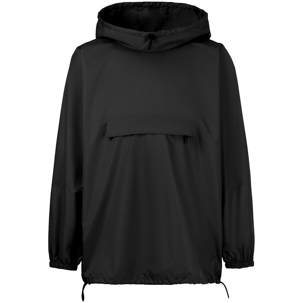 Дождевик-анорак с капюшоном и карманом на молнии спереди. Выполнен из ткани дюспо с матовой поверхностью — легкой, мягкой на ощупь, но устойчивой к повреждениям. Она не шелестит и практически не мнется. Благодаря пропитке дюспо обладает отличными водоотталкивающими и ветрозащитными свойствами.