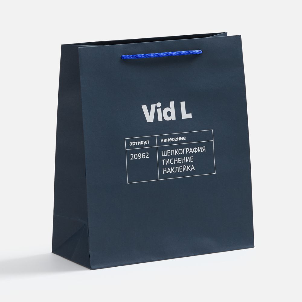 Пакет из бумаги Gentleman Blue плотностью 150 г/м². Длина шнуров 40 см. Выдерживает вес до 0,9 кг. Для большей нагрузки рекомендуется провести тест самостоятельно.