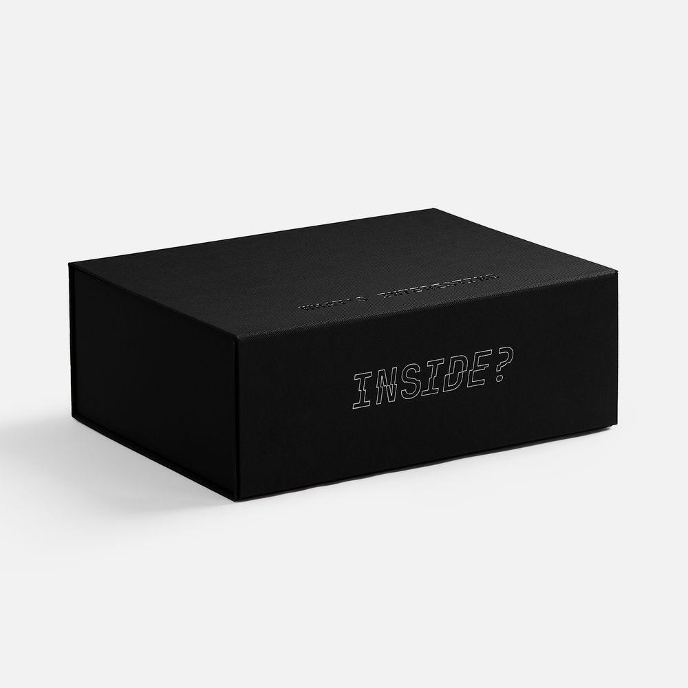 Коробка из переплетного картона, кашированного тисненой тонированной в массе бумагой, с крышкой на магните.