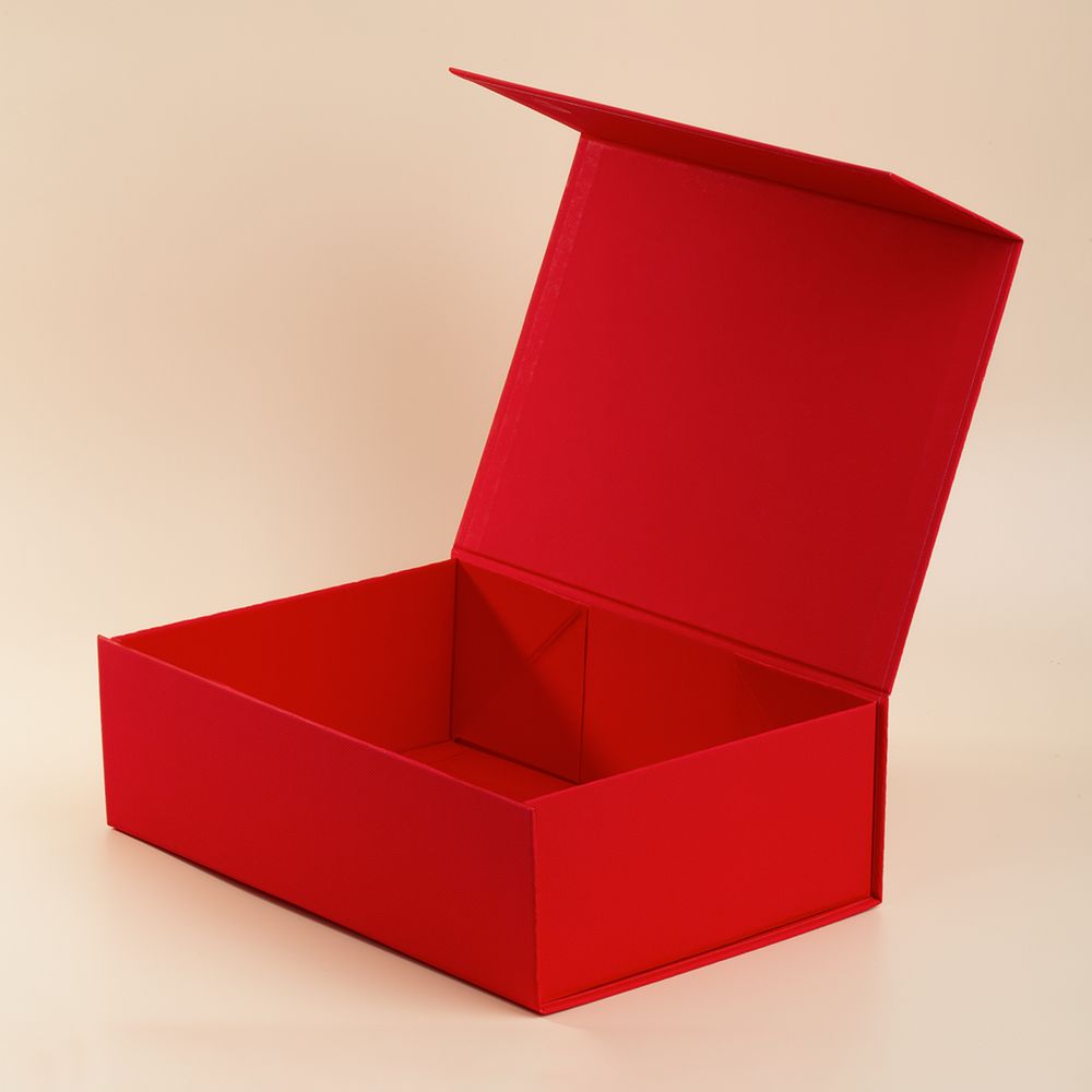 Коробка из переплетного картона, кашированного тисненой тонированной в массе бумагой, с крышкой на магните. Толщина картона 2 мм. Поставляется в плоском виде. Сборка осуществляется на скотч.