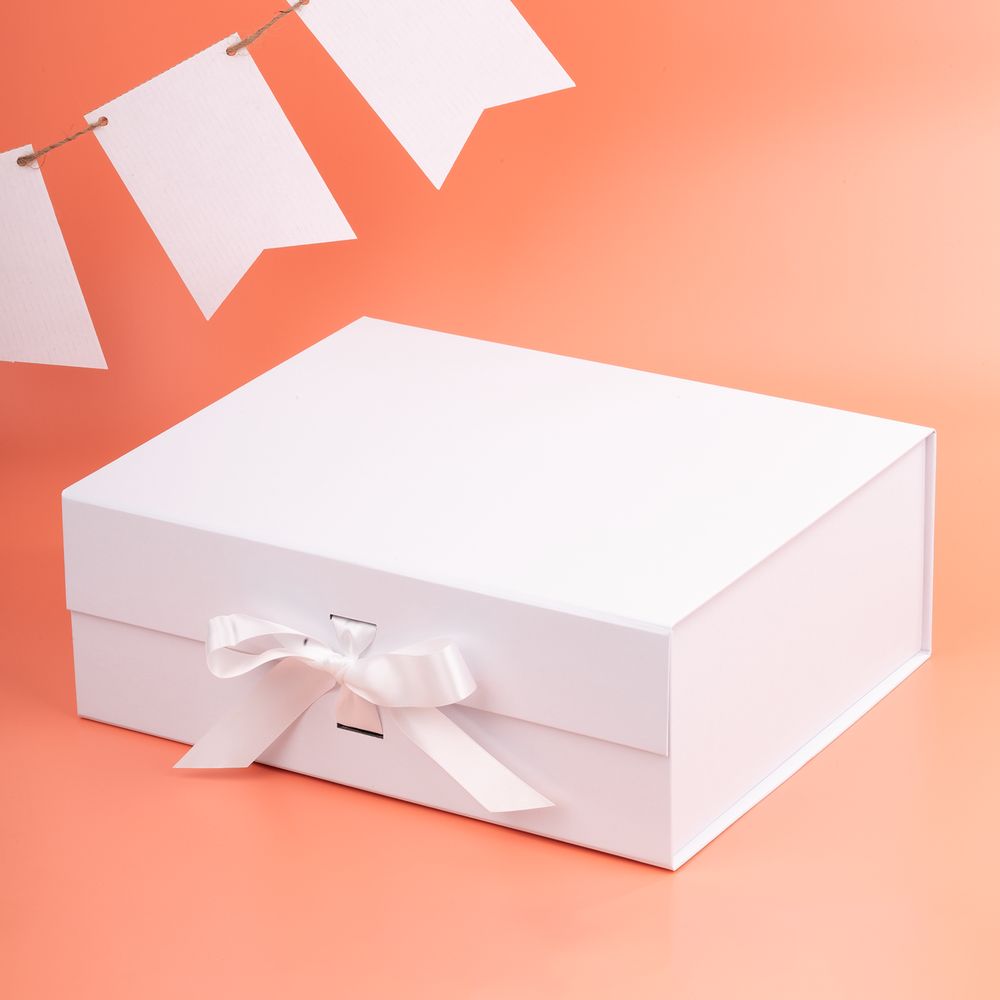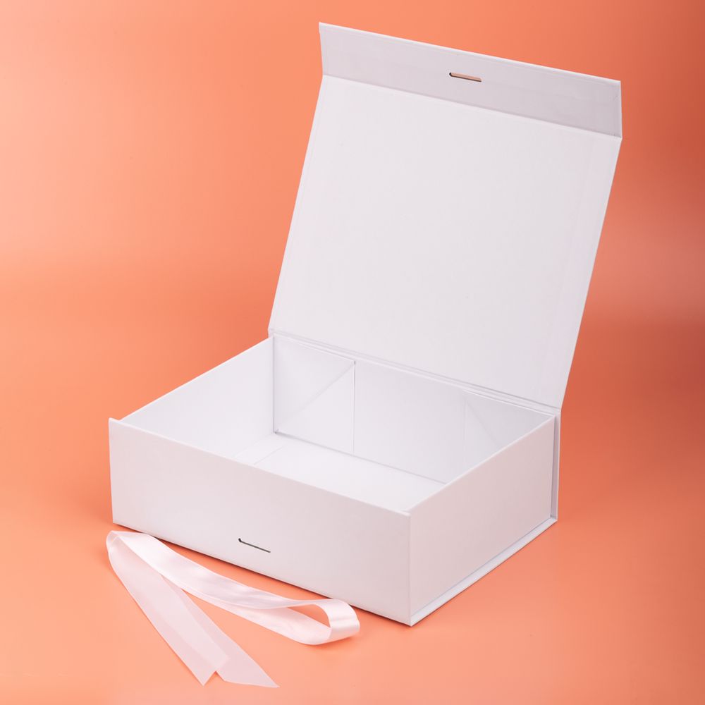 Коробка из переплетного картона, кашированного крафтовой бумагой. Крышка на двух магнитах дополнительно фиксируется репсовой лентой.Толщина картона 2 мм. Поставляется в плоском виде. Сборка осуществляется на скотч.
