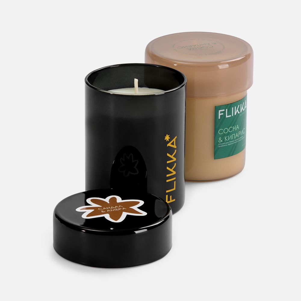 Свеча Flikka — идеальное сочетание стильного дизайна и богатой ароматической композиции, что делает ее отличным выбором как для личного использования, так и для корпоративных подарков. Подсвечник с крышкой защищает свечу от пыли, а после прогорания свечи его можно будет использовать как небольшой контейнер или шкатулку. Емкость 300 мл. Вес воска 216 г. Время горения примерно 35 часов.